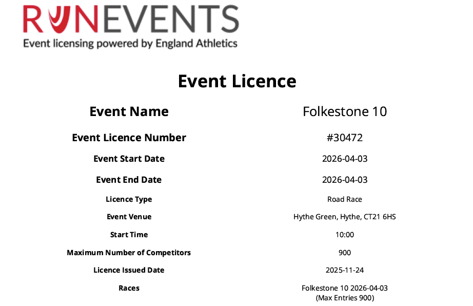 The 2026 Folkestone 10 Race takes place on Good Friday 3rd April 2026 at 10am starting from Hythe Green.
